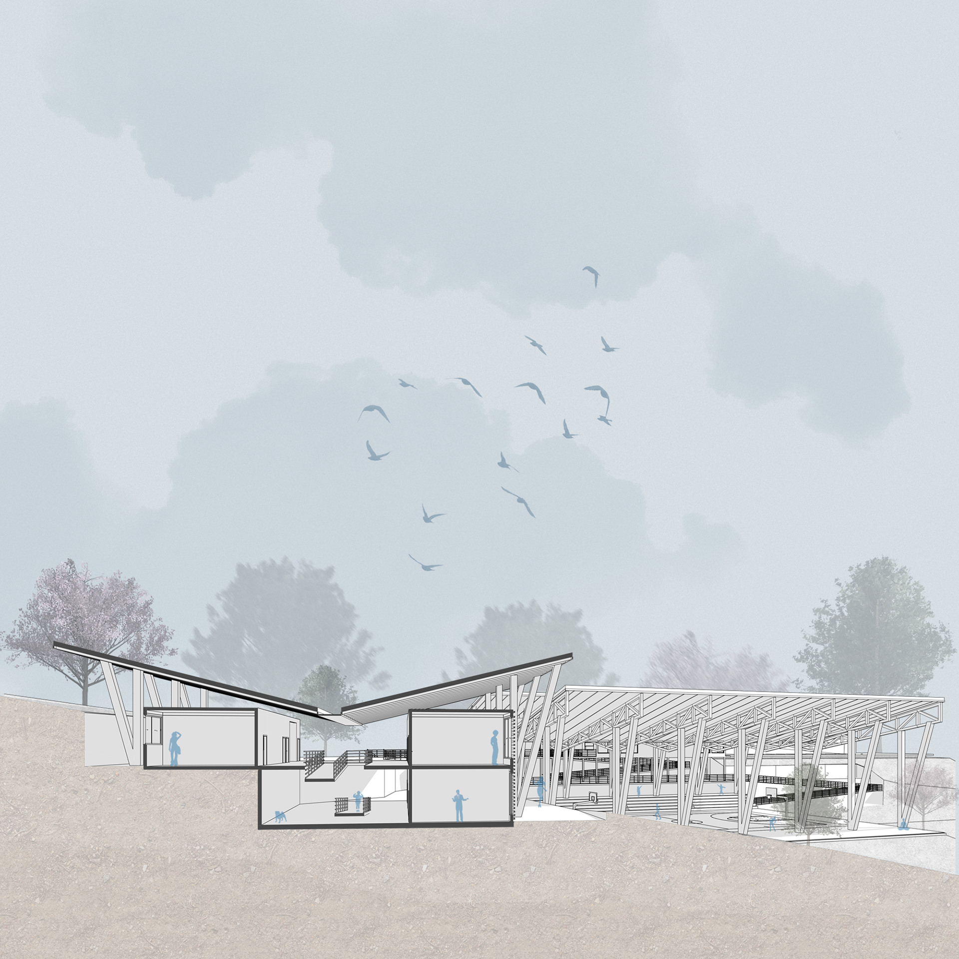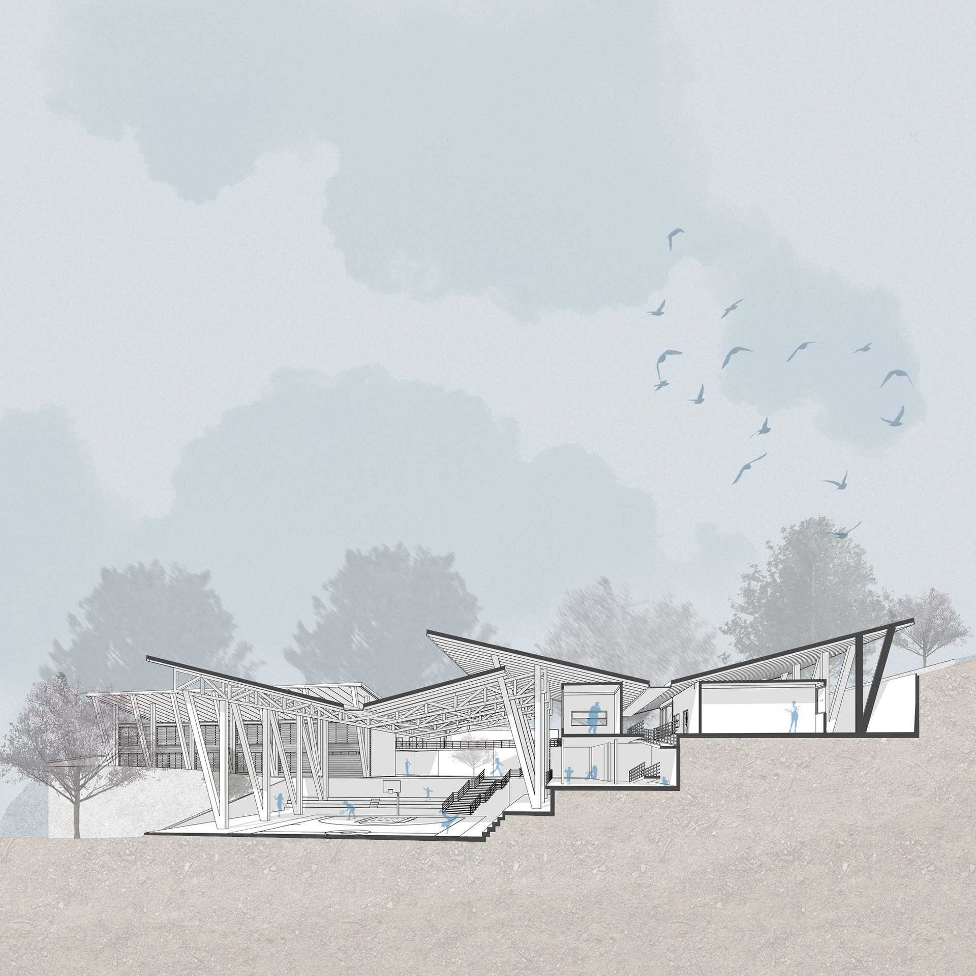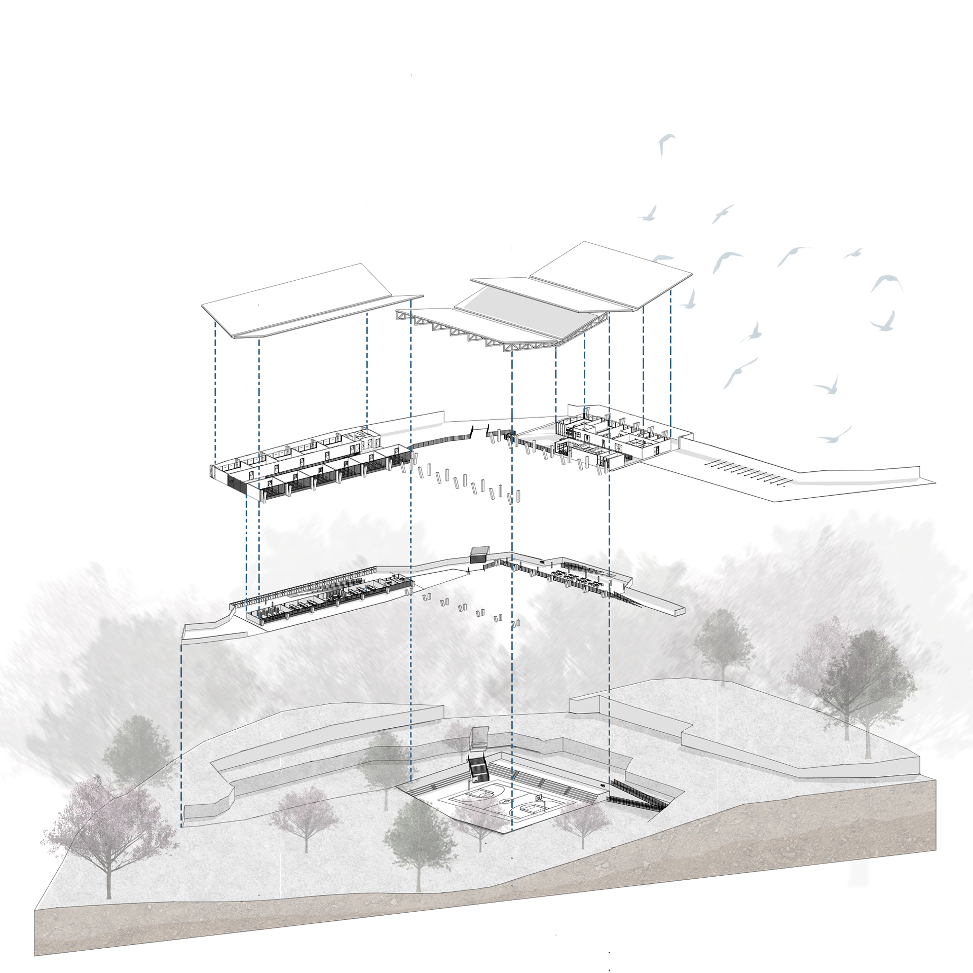 Illustration for an architectural project by Ludovica Leone.